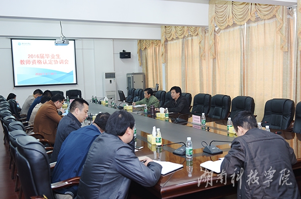本网讯(实习记者 刘献 摄影 何帅文) 3月30日下午,学校召开2016届毕业生教师资格认定协调会,确定工作思路和拟定工作办法。会议由副校长郑山明主持。