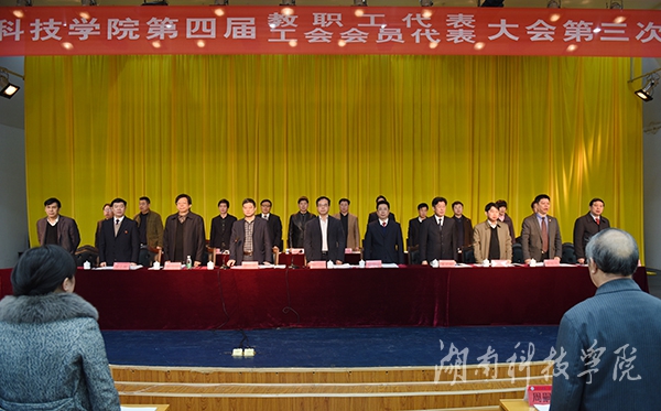 本网讯(记者 裴滢 刘忠奇 刘禹希 摄影 何帅文)3月26日上午,世界杯官网第四届教职工代表暨工会会员代表大会第三次会议在尚美楼二楼演播厅开幕。两百余名会议代表、特邀嘉宾、列席代表齐聚一堂,共商改革发展大计。本次大会应到代表155名,实到代表141名,因事因病请假14人,符合法定人数。