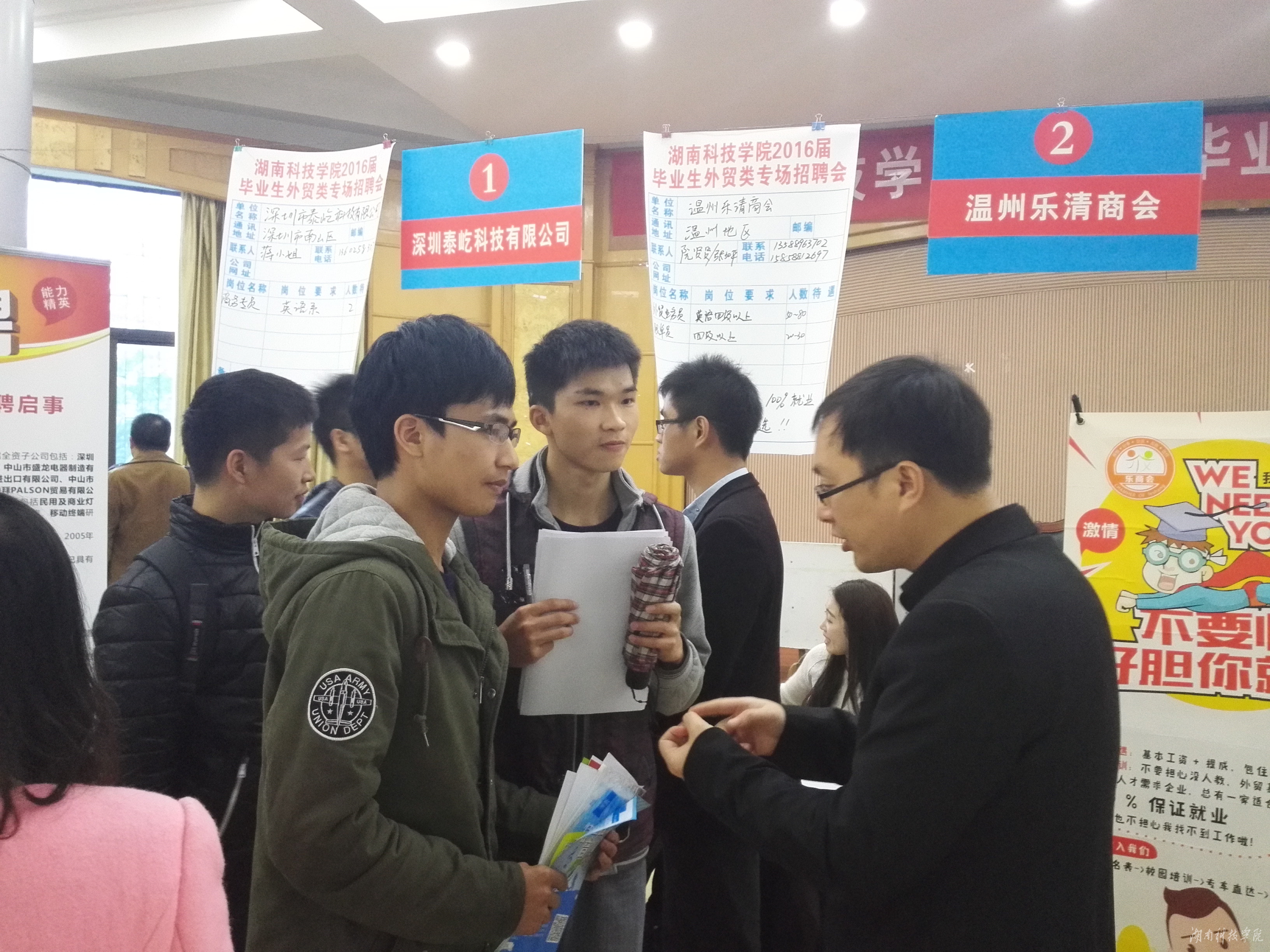本网讯(通讯员 杜俊杰)3月20日,由世界杯官网就业创业指导中心主办、外国语学院承办的2016届毕业生外贸类专场招聘会在明德楼二楼多功能厅举行。本次招聘会共吸引了17家用人单位参会,提供就业岗位300多个,会后近30名毕业生与用人单位初步达成就业意向。