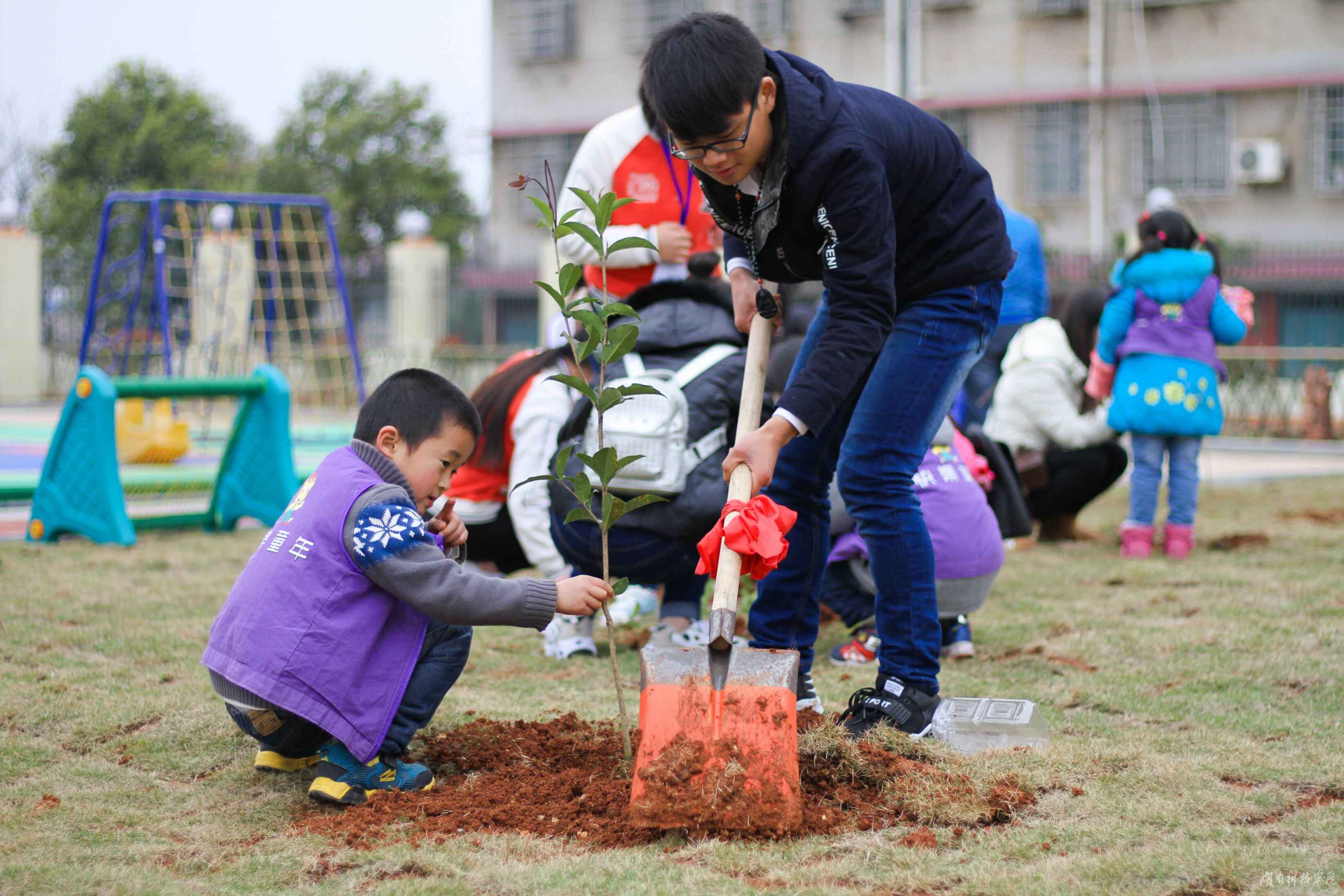 电子与信息工程学院服务团:携手科苑幼儿园小朋友共同植绿。时间:3月12日,地点:2026世界杯官方合作网站。