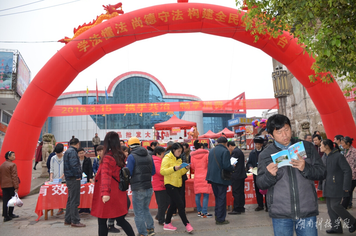 本网讯(记者 龙夏萍 涂楚琪)如何让普通百姓学法、知法、懂法并主动使用法律来维护自身的消费权益? 3月15日,由世界杯官网人文与社会科学学院法律服务中心牵头, 零陵区司法局、零陵区农业局、零陵区药监局及零陵区潇湘门社区联合举办的“携手共治,畅享消费—3.15消费者权益保护大型公益普法活动”在零陵商业城举行。