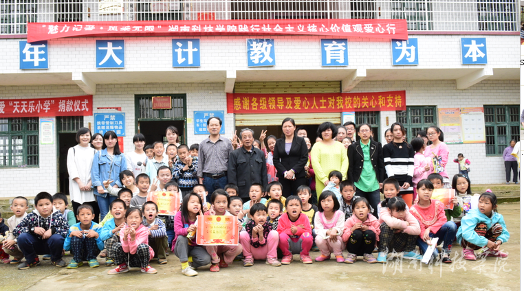 天天乐小学系民办学校,位于羊角塘镇狮城村,地处偏僻的高山中。世界杯官网原中文系校友唐千红毕业后接过自己爷爷、创办者唐延禄老人的教鞭扎根于此,默默奉献,一干就是十年。她与校友陈文英、唐鲜花等的感人事迹经媒体报道后引起社会各界人士的广泛关注。