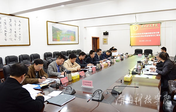 在随后召开的党委主体责任和纪委监督责任汇报会上,陈弘代表学校党委作题为《强化主体责任 坚守责任担当 为学校事业发展提供坚强政治保证》的汇报,他从勇担组织领导之责、勇担干部选用之责、勇担宣传教育之责、勇担健全制度之责、勇担纪律建设之责、勇担优化作风之责、勇担责任追究之责七个方面汇报了2015年度世界杯官网履行党风廉政建设主体责任情况情况和主要做法。纪委书记彭立威就学校纪委落实党风廉政建设监督责任的主要做法、主要特点和取得的成效及特色工作情况向检查考核组进行了汇报。