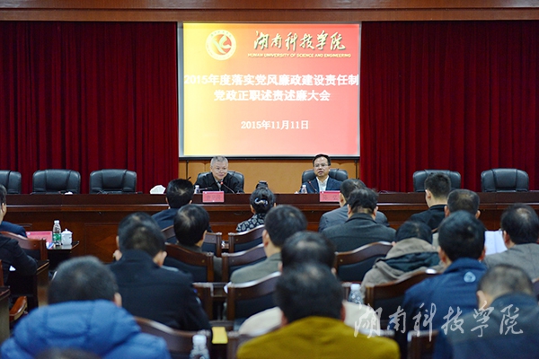 在2015年度党政正职述责述廉大会上,校党委书记陈弘向大会述责述廉。在家校领导曾宝成、唐艳明、宋宏福、彭立威、郑山明、吴小林、程智开、袁先友、陈仲庚及学校中层主要负责人参加测评。