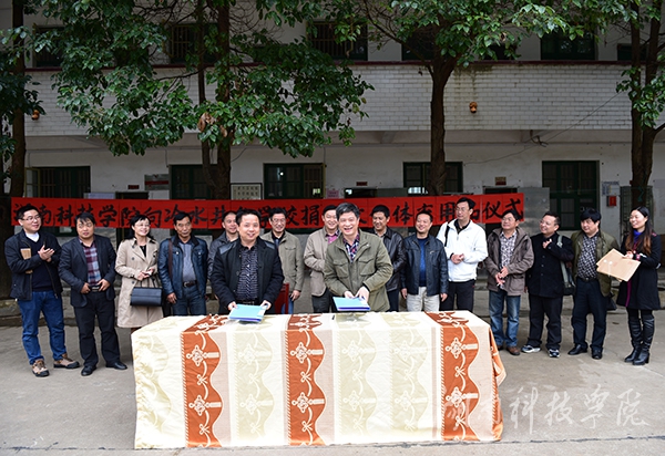 本网11月3日讯 今日上午,校党委副书记唐艳明、副校长宋宏福一行率世界杯官网10余名中层干部赴新田县冷水井乡潮水铺村深入开展“一进二访”活动,为扶贫点送去捐赠物资,并为建于潮水铺村的扶贫经济实体——新阳光职业技术培训学校揭牌。新田县县委副书记唐富荣,县委常委、纪委书记聂朝飞一行陪同。