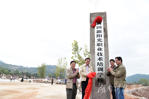 壮大村集体经济是精准扶贫的根本,只有完成“造血”功能,才能源源不断的带来“活血”。唐艳明一行实地查看了引进民间资本创办的新阳光职业技术培训学校,该校由村以集体土地使用权入股,贫困农户以金融信贷资金优先参股,每年取得定额分红,是帮扶贫困户精准脱贫的重要举措。唐艳明就通过兴办扶贫经济实体,帮助村民创收等情况进行详细了解,并为新阳光职业技术培训学校揭牌。
