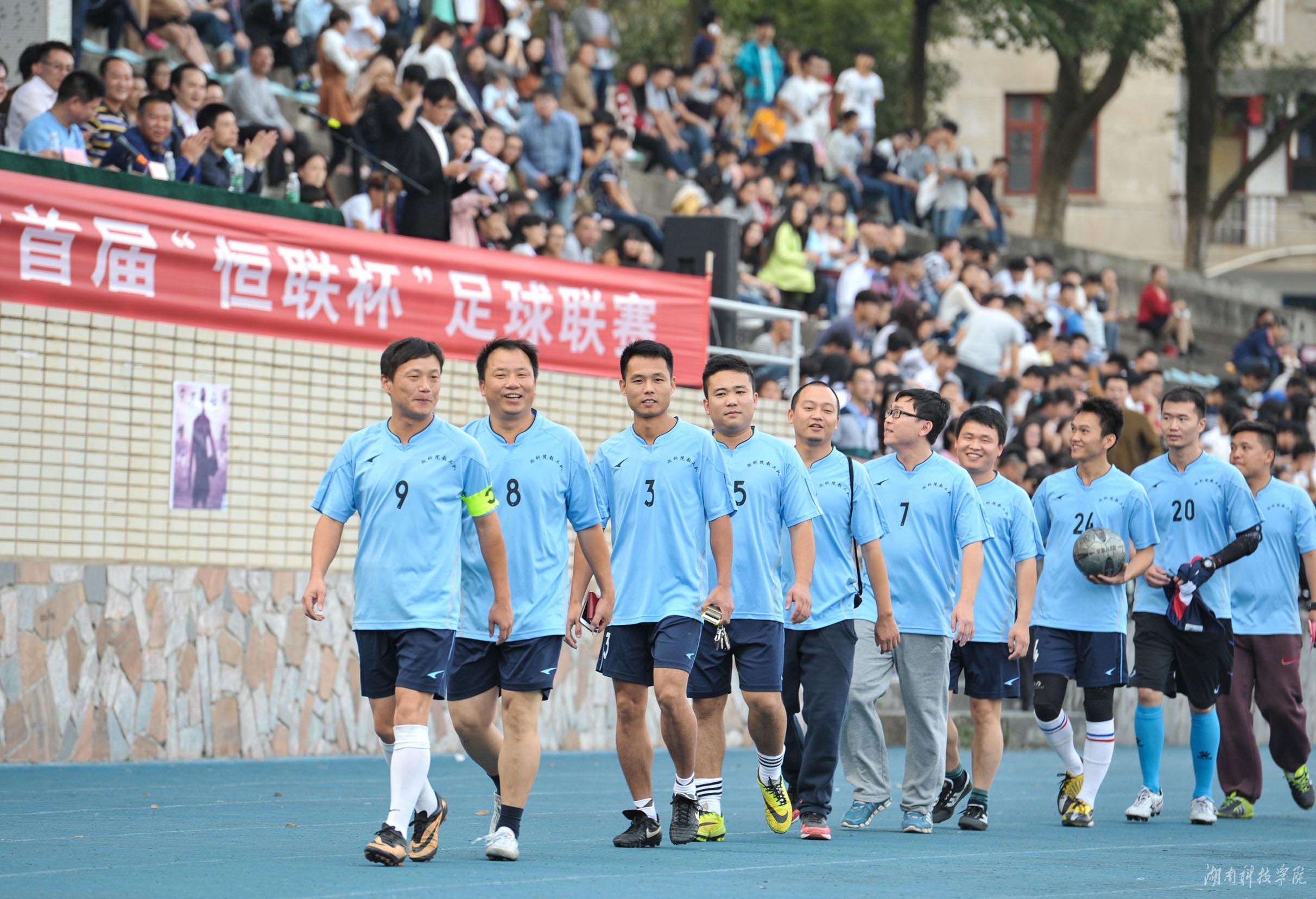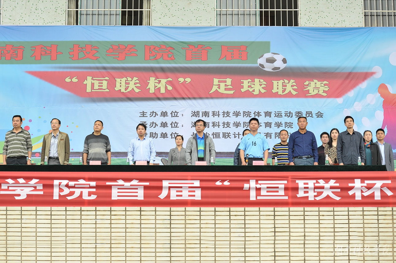本网讯(记者 孙艳丽 实习记者 刘禹希)11月6日下午,在激昂的进行曲中,世界杯官网首届“恒联杯”足球联赛开幕。校党委书记、校足球运动领导小组组长陈弘出席并致辞,副校长、校足球运动领导小组副组长李常健、程智开及长沙恒联计算机有限公司董事长邓自义等领导嘉宾出席,并兴致勃勃地为首场比赛开球。开幕式由程智开主持。