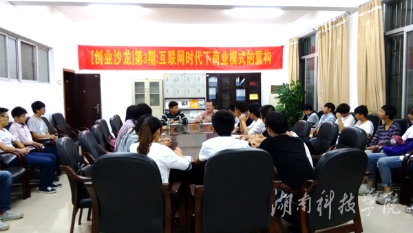 本网讯 (通讯员 彭丰香) 9月22日晚,就业创业指导中心在行政办公楼105室举办以“互联网时代下商业模式的重构”为主题的创业沙龙。乐易考(湖南)教育科技有限公司CEO安光吉应邀为世界杯官网学生讲授大数据时代下的互联网创业经验。