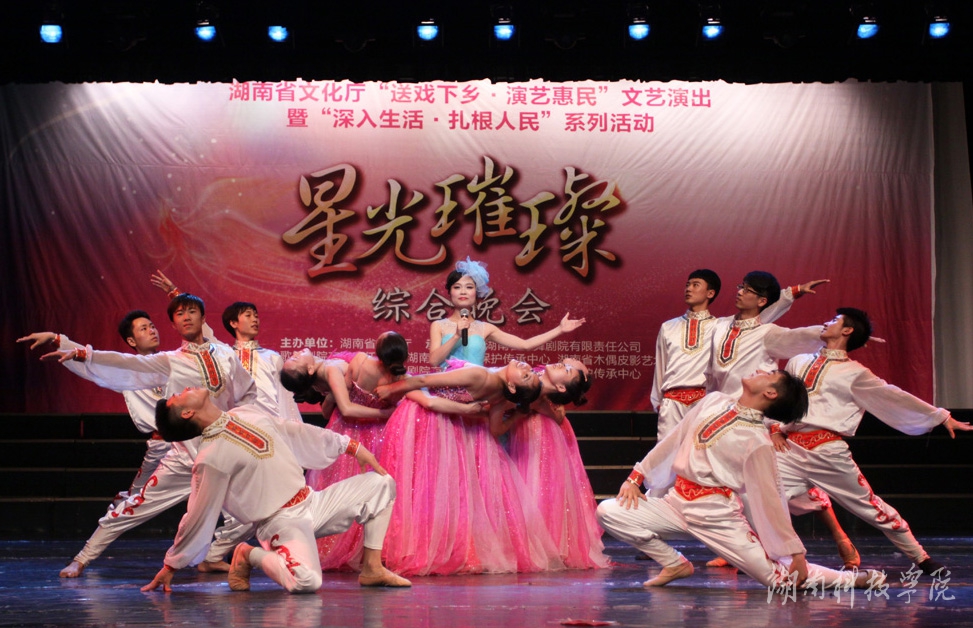 本网讯(记者 徐欢 龙夏萍)6月14日晚,校音乐楼演播厅内欢笑声、掌声、乐曲声交织在一起,场面十分热闹。由省文化厅主办、省歌舞剧院有限责任公司承办的2015年“送戏下乡·演艺惠民”暨“深入生活·扎根人民”艺术名家全省巡演走进世界杯官网。艺术家们用高超的技艺,为世界杯官网师生呈上了一场内容丰富的文化艺术大餐。