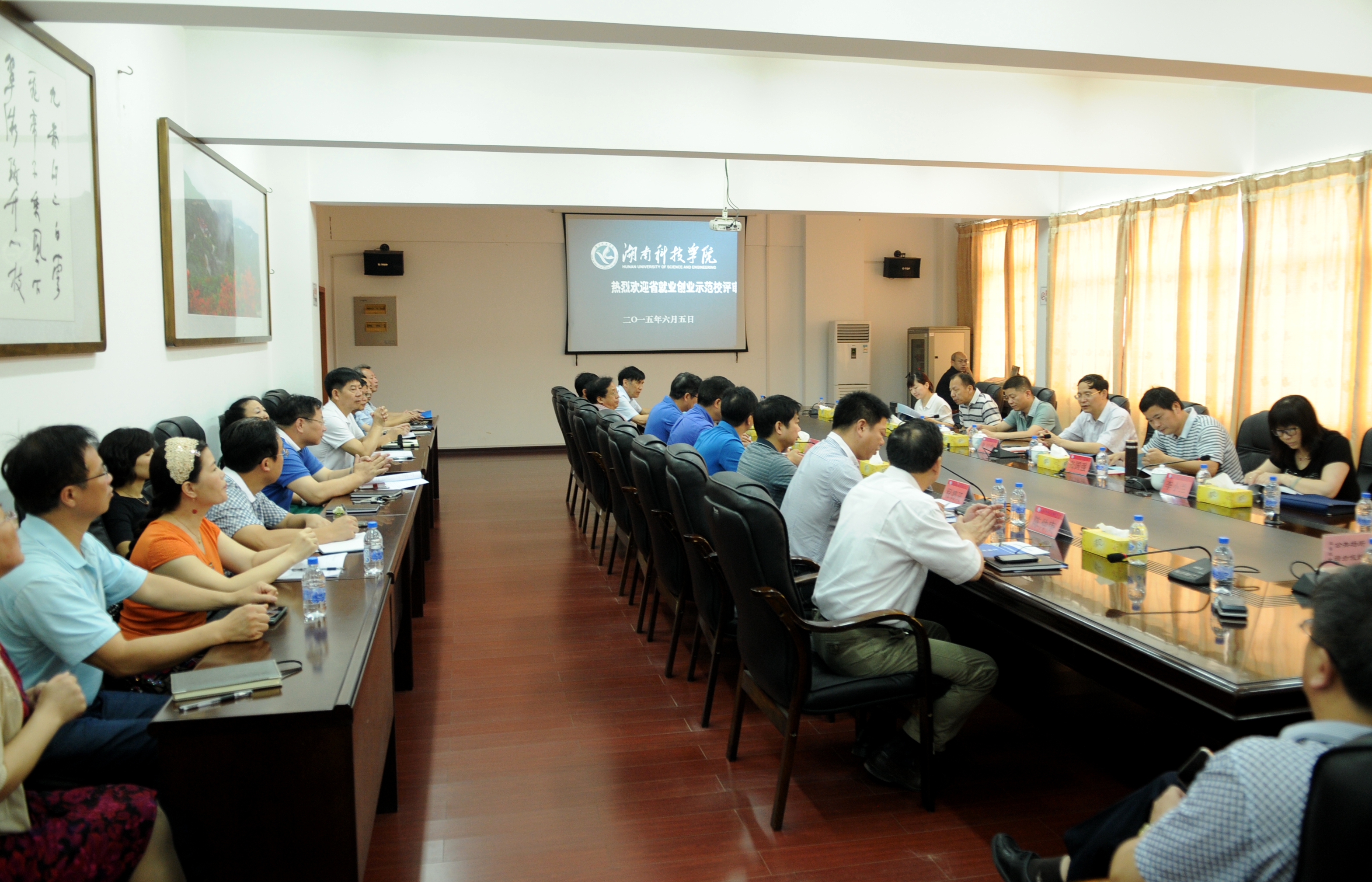 本网讯(记者 段坤 李瑞 摄影 秦峰)6月5日,以湖南科技大学党委副书记朱川曲为组长的省教育厅高校就业创业示范校评审专家组莅临世界杯官网,对世界杯官网进行省“就业创业示范校”现场考察评审。通过听取汇报、召开座谈会、查阅资料和现场走访等环节,专家组对世界杯官网大学生创业就业工作表示高度肯定。
