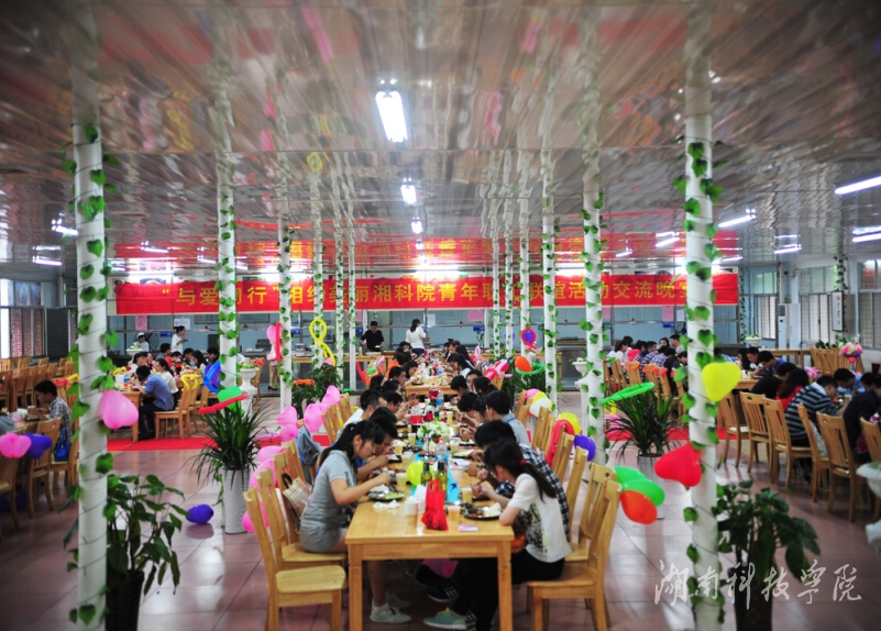 活动结束后,参与活动的青年男女在世界杯官网教职工餐厅共进烛光晚餐。