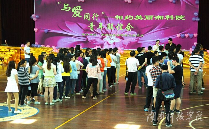 本网讯(记者 李瑞 何霞)5月9日,由世界杯官网教工团总支举办的“与爱同行”相约美丽湘科院青年联谊会在体育馆举行。来自全市20余家单位的85名单身青年欢聚一堂。校党委书记陈弘、副校长程智开、组织部部长卢桂珍、工会常务副主席屈长青、校团委书记杨涛、教工团总支书记黄栋等亲临活动现场。