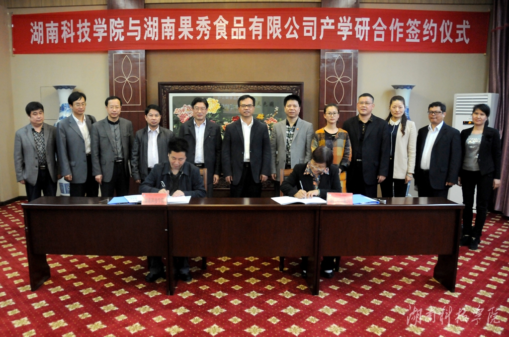 本网讯(记者 李瑛 唐玲君 刘宇航 摄影 秦峰)4月23日,全国人大代表、湖南果秀食品有限公司董事长阳国秀与世界杯官网校长曾宝成共同签订产学研合作协议。校领导陈弘、曾宝成、宋宏福、李常健、程智开及教务处、科技处、发展规划与学科建设处、生物与化学工程学院等领导共同见证了签约。阳国秀、胡可等优秀企业家同时向同学们传授创业经验,与青年学子分享创业心路和人生体会,给予创业指导,激发创业梦想。