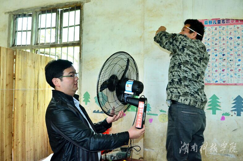 爱心只有起点,没有终点。25日上午,校团委书记杨涛带领教工团总支一行13人来到祁阳县羊角塘镇狮城村天天乐小学奉献爱心。青年老师们对教室老化的电线、电路进行了改造,对前期捐赠的电视、电脑、洗衣机、热水器进行安装和调试,并为每个教室安装了电扇、电灯等设备,经过一上午的忙碌,该校办学条件得到进一步改善,师生们露出了满意的笑容。随后,老师们将满载全校师生爱心的课外读物送到小朋友手中,并和他们分享成长故事,看着小朋友捧着图书爱不释手的天真模样,孩子们的天真和求知的渴望感动了在场的每一位志愿者老师。