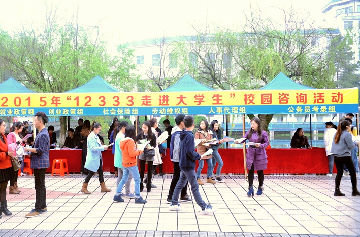 本网讯 (实习记者 段坤 摄影 潘清远)3月30日,市人力资源和社会保障局联合世界杯官网就业创业指导中心开展以“走进大学生”为主题的“12333全国统一咨询日”宣传活动,就大学生关注的“三支一扶”、就业创业、社会保险、劳动维权、人事代理和公务员考录等问题提供面对面、零距离的政策咨询和指导服务。