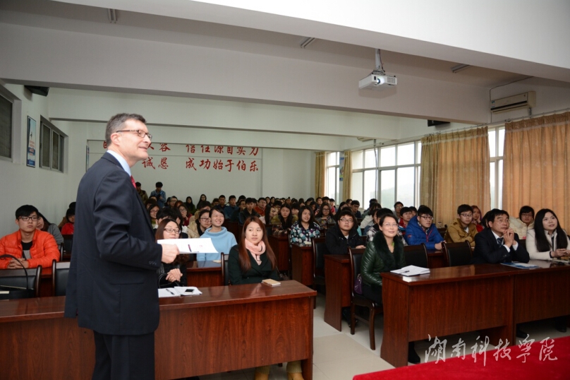校党委书记陈弘、校长曾宝成、副校长宋宏福等领导热情接待了代表团一行。曾宝成对代表团的到来表示热烈欢迎,介绍了学校办学情况,希望两校加强交流,实现优势互补,建立全面、长期的战略合作关系,共同提高办学水平。曾宝成说:“两校在生机勃勃的春天播下教育合作的种子,只要用心给这颗种子浇水、施肥,这颗种子一定会发芽、生长,开出灿烂的交流之花,收获丰硕的合作之果”。该校校长鲍尔温高度赞同曾宝成校长的意见。他表示,期待两校通过进一步的合作交流,促进共同发展。