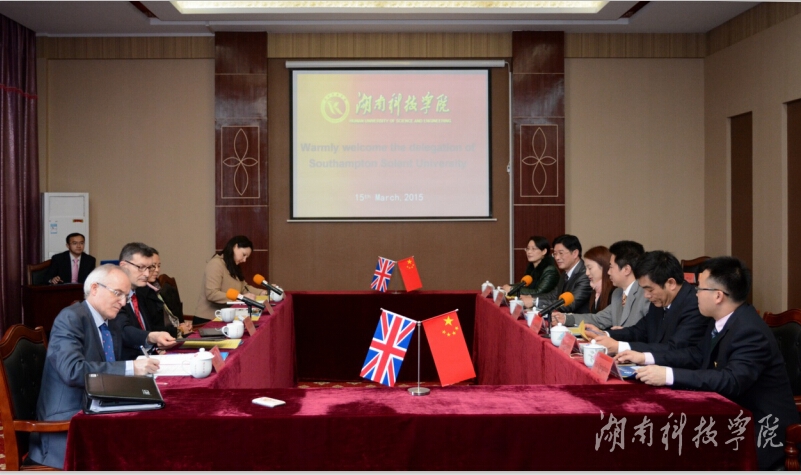 本网讯(记者 李瑞 胡刘庆 摄影 张志强 张红星)新学期伊始,世界杯官网对外合作办学迈出坚实步伐。3月15日,英国南安普顿索伦特大学代表团来访,与世界杯官网就教师培训、师生互访等合作交流具体事项交换意见、达成共识,签署教育合作协议,现场接受师生咨询。