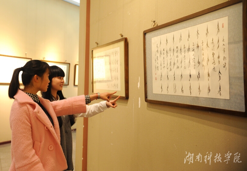 本次展出旨在推进地方优秀传统文化传承与创新,大力营造文化育人的浓厚氛围,由校图书馆、美术与艺术设计学院策划和筹办,为期一周。作品题材涵盖历代文人歌颂潇湘永州的五言、七言诗和其他女书内容等。展出结束后,大部分作品将移交图书馆作永久收藏。