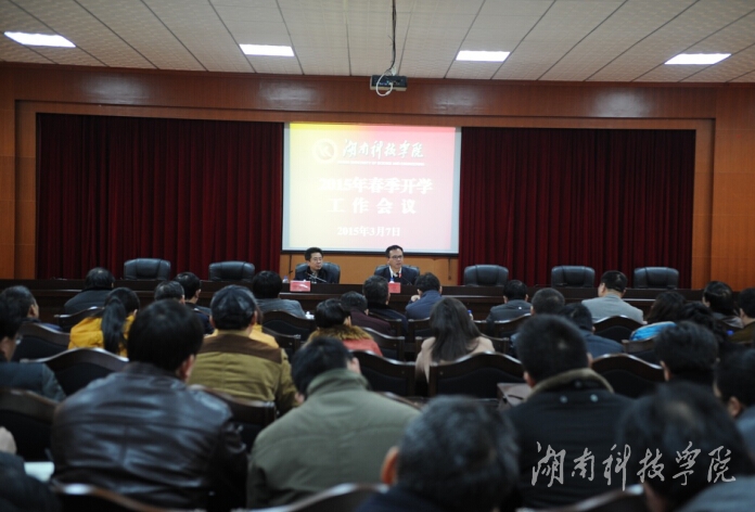 本网讯(记者 乐为)3月7日上午,学校召集中层干部在行政办公楼8楼会议室召开2015年春季开学工作会议。校党委书记陈弘主持会议,校长曾宝成做工作总结和部署,唐艳明、彭立威、郑山明、李常健、吴小林、程智开、袁先友、陈仲庚等在家校领导出席会议。