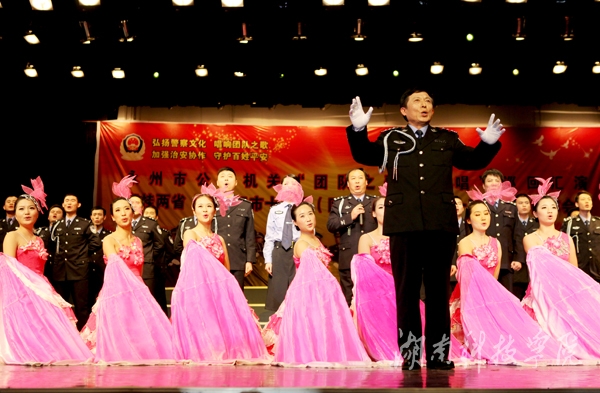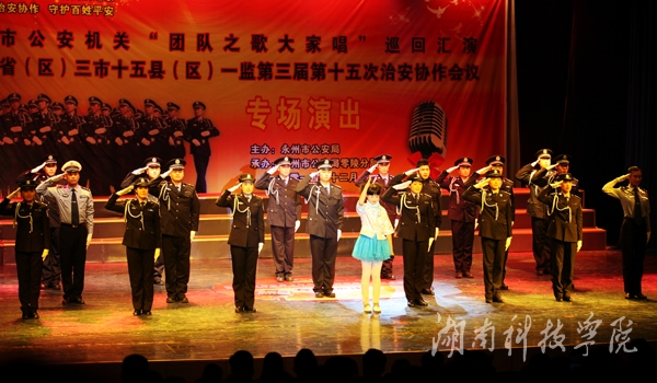 本网讯(记者 李东泼 邓梦妮)“弘扬警察文化,唱响团队之歌;加强治安协作,守护百姓平安”。12月11日晚,由永州市公安局主办,零陵分局承办的永州市公安机关“团队之歌大家唱”巡回汇演暨湘桂两省(区)三市十五县(区)一监第三届第十五次治安协作会议专场演出于世界杯官网音乐厅上演。