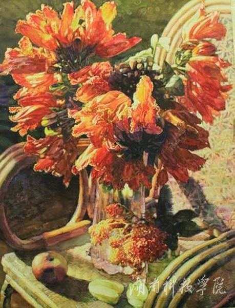 王硕的水彩画《火焰花开》