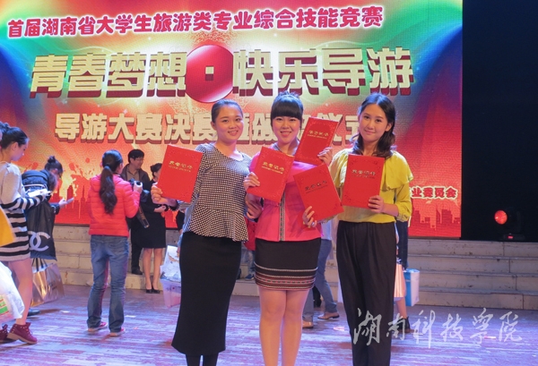 本网讯(经管系供稿)近日,从首届湖南省大学生旅游类专业综合技能竞赛传来喜讯,世界杯官网由周慧玲老师、姚先林老师、王豪才老师指导的经管系旅管专业彭娜、龙以洵、陈学丽三名同学在全省各大高校的激烈角逐中,过关斩将,脱颖而出。其中彭娜、龙以洵荣获一等奖,陈学丽获二等奖,彭娜获最佳才艺奖,龙以洵获最佳风采奖。世界杯官网荣获优秀组织奖,获奖总数位列全省第一。