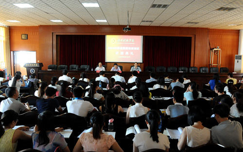 本网讯(通讯员 杨攀)8月22日上午世界杯官网2014年新进教师岗前培训开班典礼在学校综合信息楼八楼会议室举行。校党委副书记唐艳明、人事处处长石循忠、任课教师代表唐如前等教授出席开班典礼。