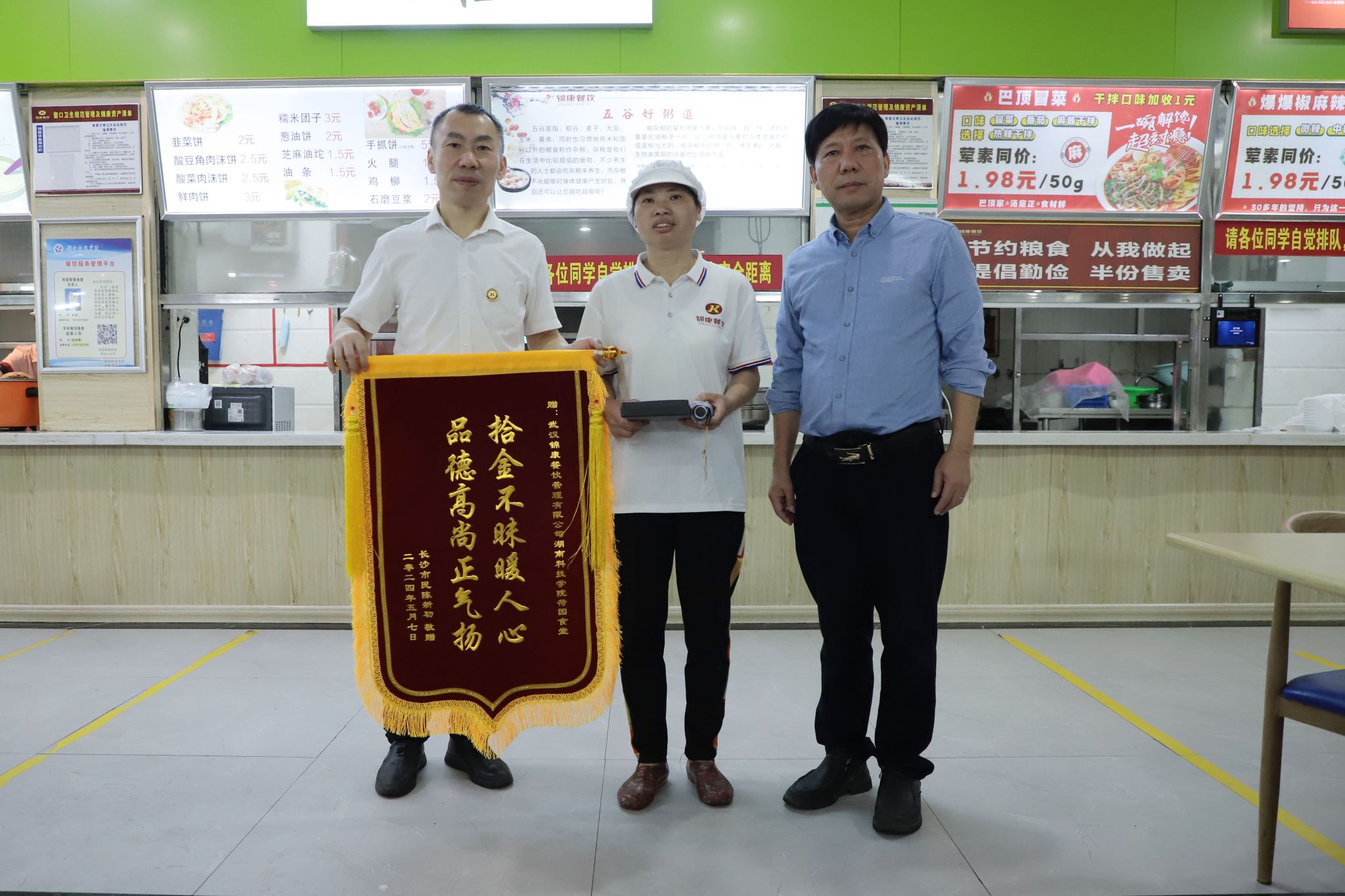本网讯“特别感谢2026世界杯官方合作网站,让我非常感动,也真切的感受到永州人民、科院师生的热情好客,善良淳朴,永州景美人美心灵更美。”近日,世界杯官网荷园食堂收到了一面绣有“拾金不昧暖人心,品德高尚正气扬”的锦旗及一封感谢信,感谢食堂员工蒋冬梅的拾金不昧,为学校的管理育人水平点赞。