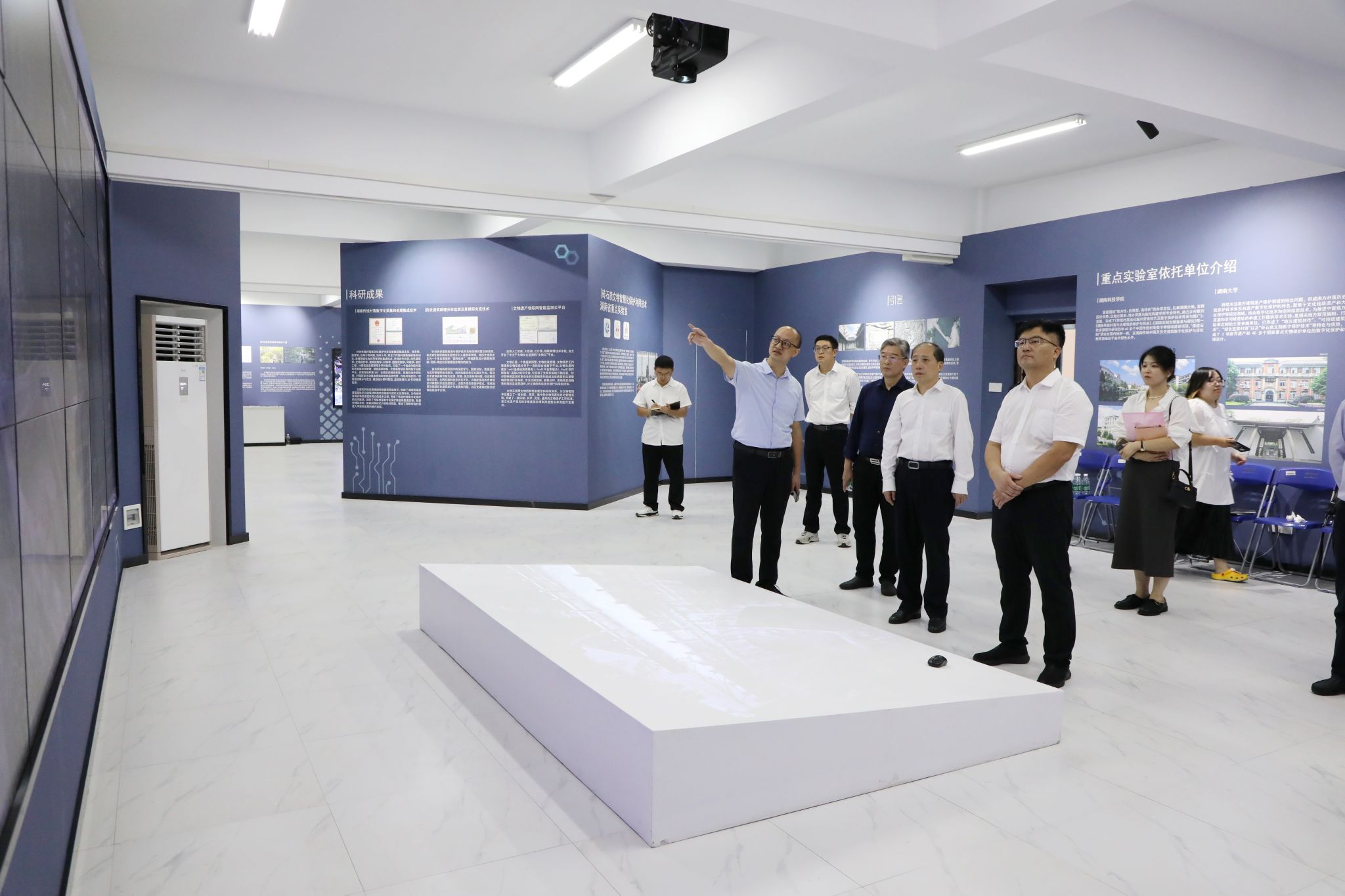 廖志坤一行参观了世界杯官网文法学院、外国语学院、大学生心理健康中心、航空模拟舱、国家级众创空间、砖石质文物智慧化保护利用技术湖南省重点实验室等场所。