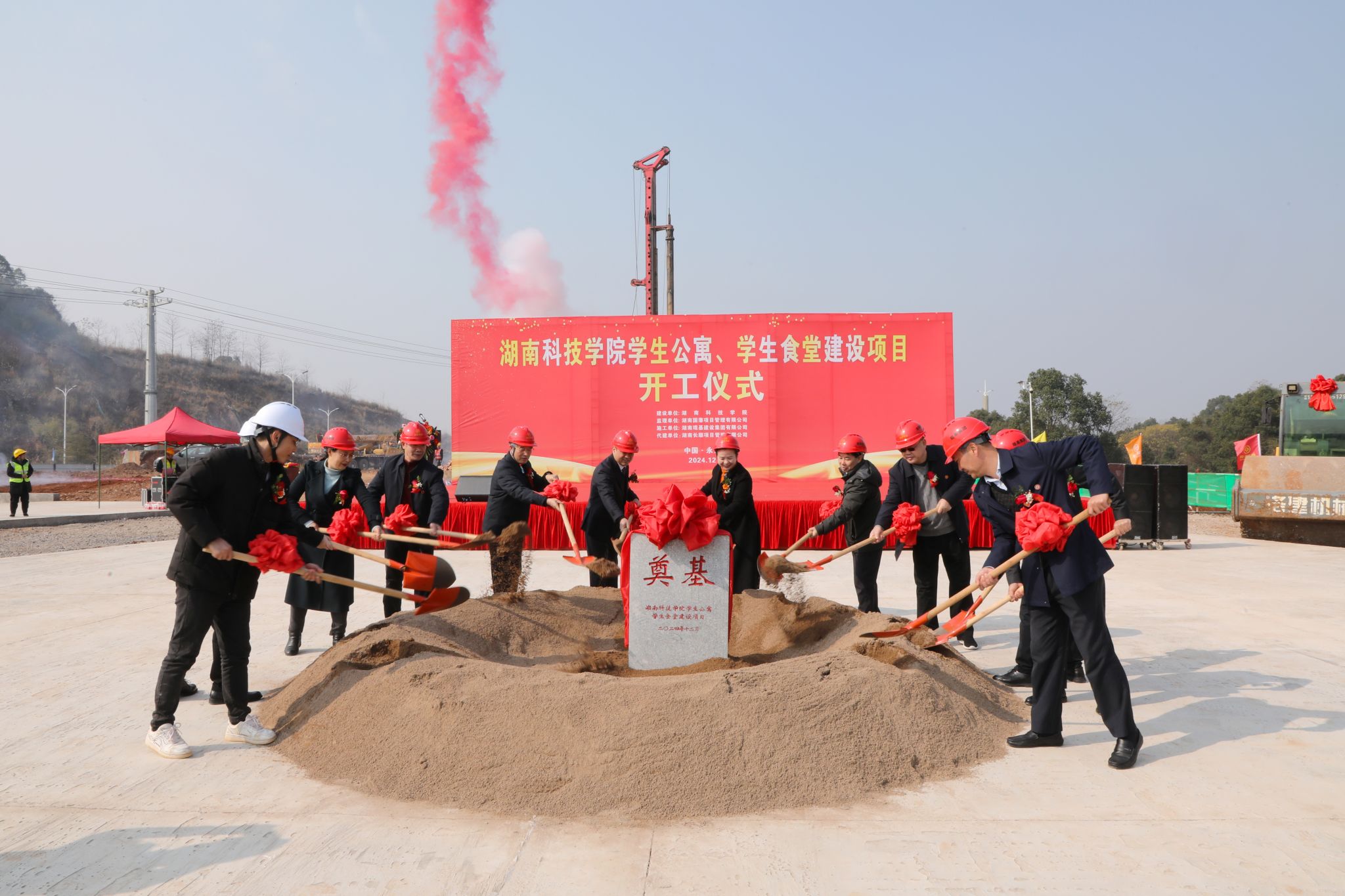 本网讯(记者 向薛峰 谢志豪)12月28日上午,世界杯官网举行新建学生公寓及食堂项目开工仪式,零陵区副区长秦明明,党委副书记、校长黄创霞及全体在家校领导、党委委员等领导出席仪式,仪式由校党委副书记宋宏福主持。