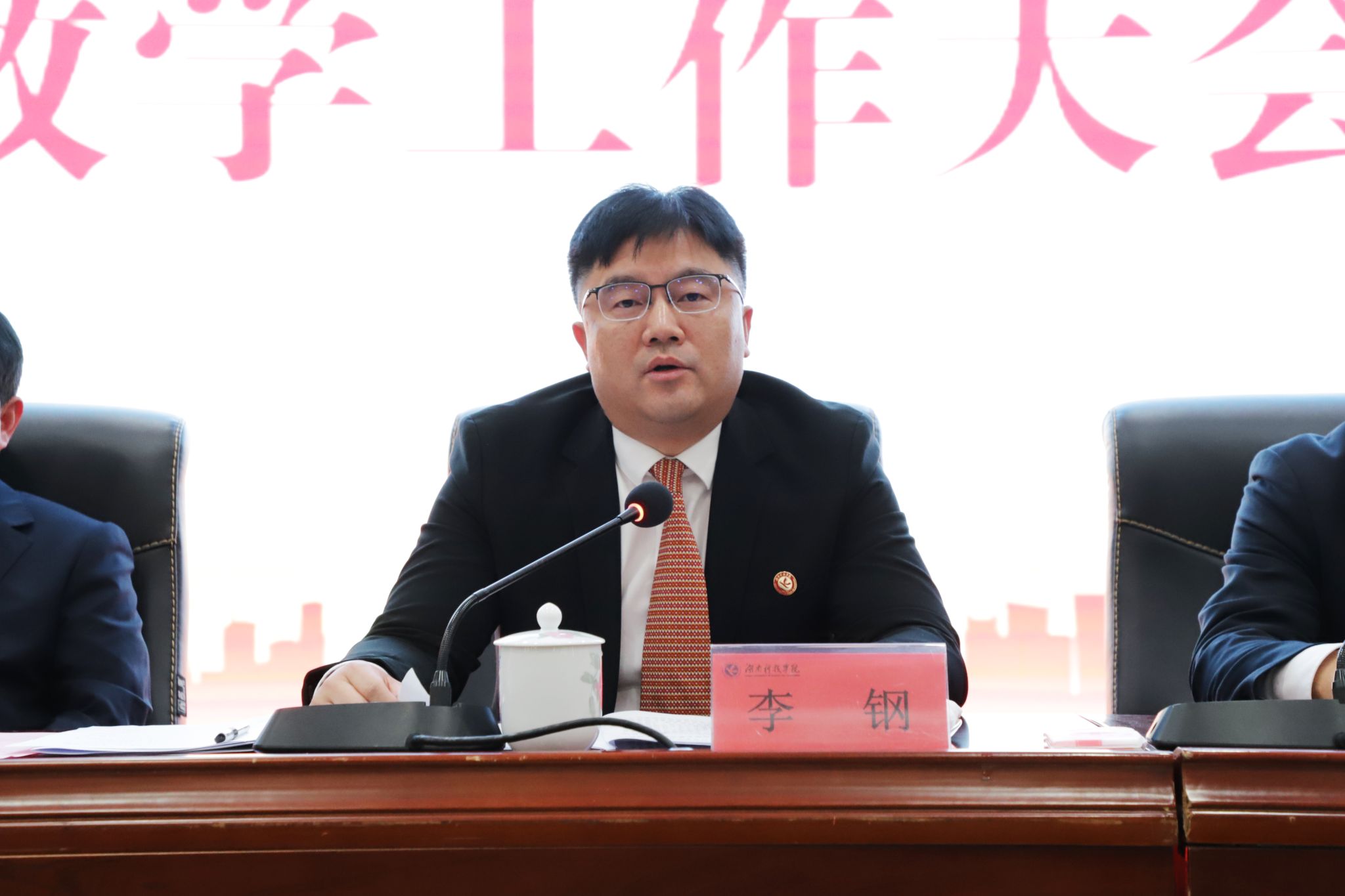 李钢代表学校党委向多年来默默奋战在教学一线的教师和管理工作者致以崇高的敬意和衷心的感谢。他在总结讲话中强调,一是要提高政治站位,全面落实全国、全省教育大会精神。全校各单位,要牢牢把握教育的政治属性、人民属性、战略属性,紧紧围绕立德树人根本任务,切实把思想和行动统一到全国、全省教育大会精神上来。二是要加强组织实施,稳步推进教育教学改革取得实效。全校各单位要在本次会议成果的基础上,将党中央、省委决策部署具体化、项目化、制度化,细化为近中远期工作安排,明确责任主体、任务分工和工作机制,确保全国、全省教育大会精神在学校落地见效。三是要强化使命担当,加快推动学校高质量内涵式发展。全校上下特别是领导干部,要以强烈的责任感使命感紧迫感,进一步提振精神、锐意进取、开拓创新、真抓实干,不断增强教育教学工作本领,为推动学校教育教学工作高质量发展、实现“三高四新”美好蓝图、加快建设教育强省贡献更多科院力量。
