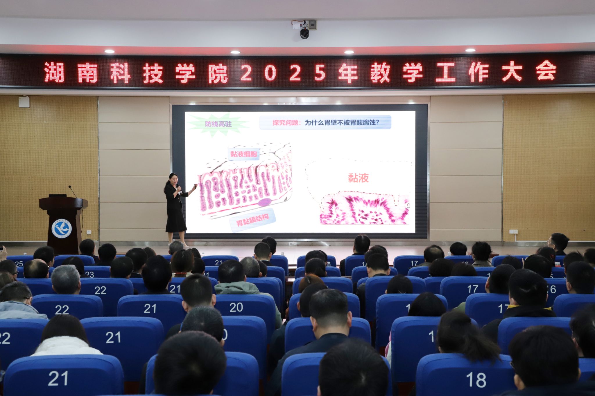 何福林作题为《大力弘扬教育家精神 锚定立德树人根本任务 持续推进教育教学综合改革 全面提升人才自主培养质量》的大会报告,他总结回顾了学校近三年的教学工作,明确了今后三年学校教学工作的基本思路、主要任务和措施。他指出,学校要锚定“立德树人”根本任务,持续推动教育教学改革,不断优化人才培养模式和课程体系,着力培养学生的理想信念、创新精神和实践能力,努力开创人才培养和教学工作新局面。在做好常规教学工作的基础上,要重点抓好以下八个方面的工作:一是更新教育教学理念,做好顶层设计;二是强化教师队伍建设,打造一流师资团队;三是狠抓专业建设,构建优势明显、特色鲜明的专业体系;四是加强课程教材建设,不断提升教学质量;五是加强教育数字化建设,赋能教育教学改革;六是强化实践教学,提升学生应用能力;七是全面推进审核评估,着力涵养质量文化;八是强化学校社会服务职能,助力永州基础教育高质量发展。