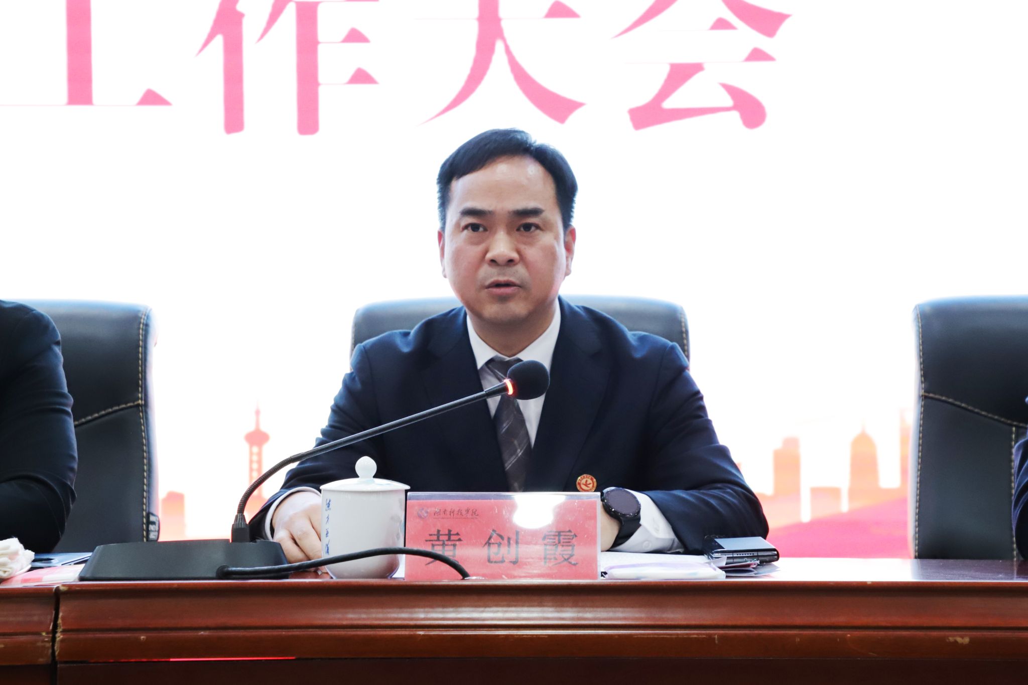 黄创霞发表题为《锚定“三高四新”使命 勇当教育强省先锋 以改革创新驱动学校教育教学工作高质量发展》的讲话。他就进一步加强学校教育教学工作提出了三点意见:一是把握发展大势,直面挑战谋发展。我们要学深悟透《教育强国建设规划纲要(2024—2035年)》《教育强省建设规划纲要(2025—2035年)》等重要纲领性文件,立足学校实际,进一步明确办学定位、厘清发展思路、深化发展共识、凝练优势学科、打造办学特色,实现高质量发展;二是聚焦“六个强化”,推动内涵式发展。重点推进“强化党建引领,筑牢教育高质量发展根基”“强化‘大思政课’建设,落实立德树人根本任务”“强化评估导向,夯实教学质量生命线”“强化学科建设,提升人才培养适配性”“强化产教融合,切实增强服务地方水平”“强化技术赋能,推动教育数字化转型”等六个方面的工作;三是做“四有”好老师,争当育人引路人。全体教师要“以德立身,争做师德表率”“以爱育人,甘当学生良师”“以研促教,勇立创新潮头”,打造一支师德高尚、业务精湛、结构合理、充满活力的高素质专业化教师队伍。