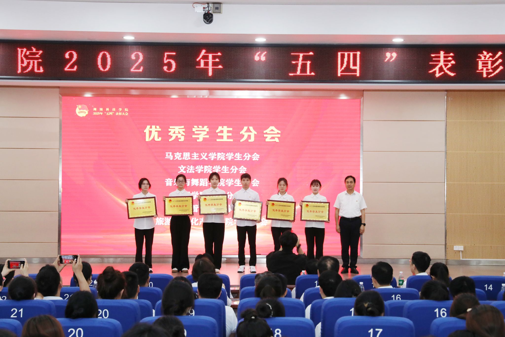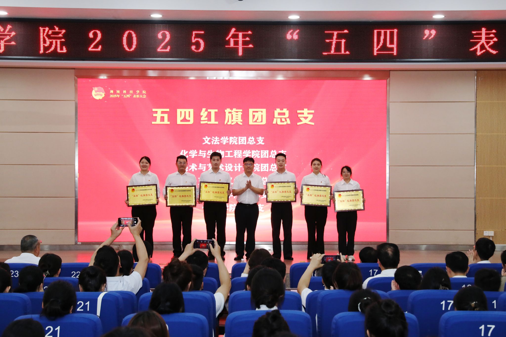 本网讯(记者 万湘徽 摄影 谢志豪 温百石 阮颖)4月29日,学校举行2025年“五四”表彰大会,表彰世界杯官网在共青团工作中涌现出的先进集体和个人,全体校领导、党委委员出席大会。