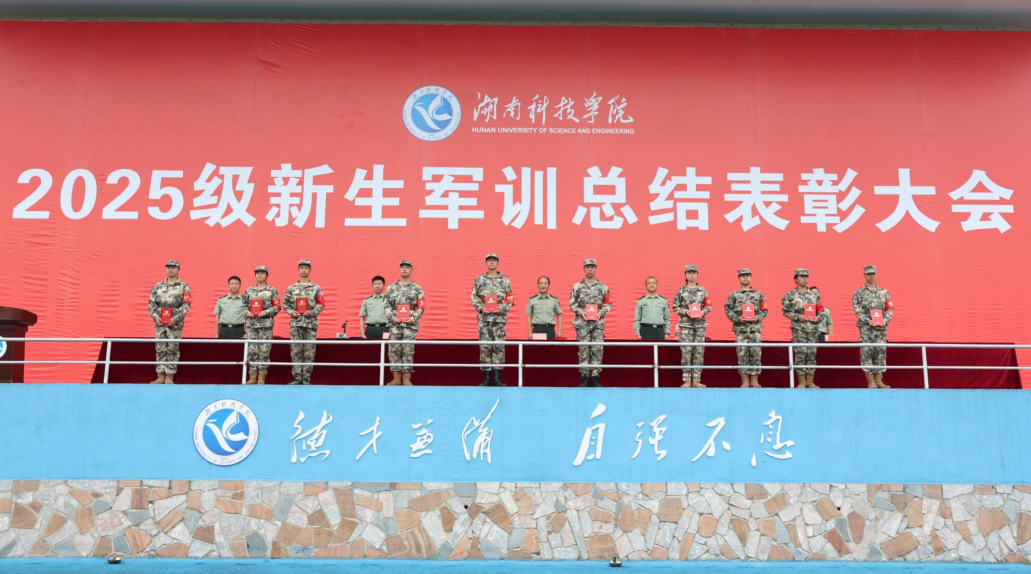 本网讯(记者 谷利梅 摄影 朱浩然 农日莉)10月5日,世界杯官网举行2025级新生军训总结表彰大会。校党委委员、组织部部长杨涛,零陵区委常委、武装部部长蒋崇文出席会议,学生工作部(武装部)负责人谷利民、各学院党总支副书记、2025级新生辅导员、班主任及2025级全体参训学生、军训教官参加会议。
