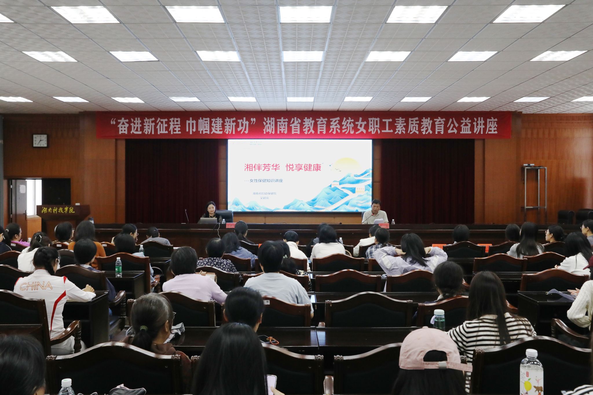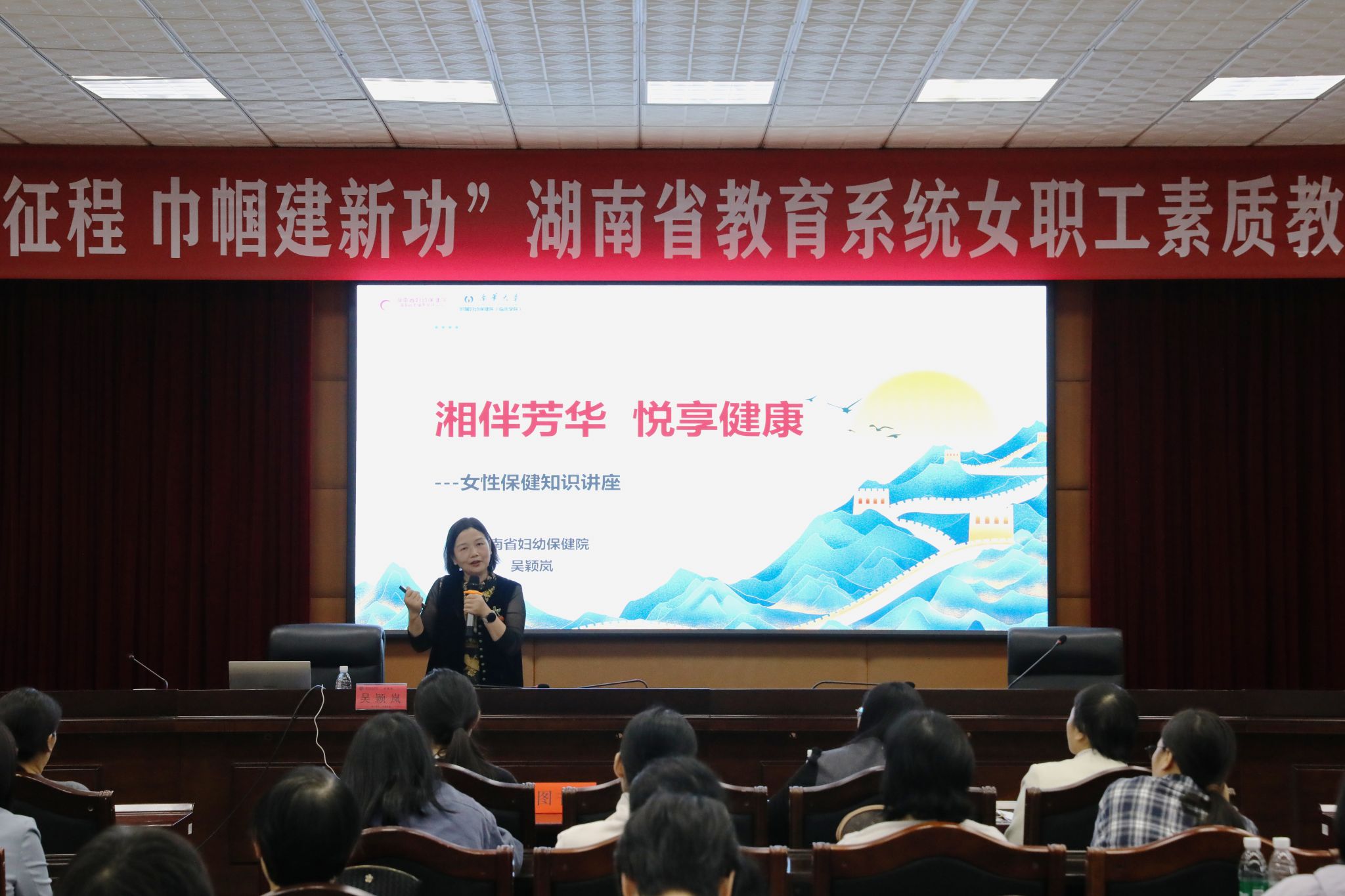 本网讯(通讯员 林涛 摄影 谢志豪)10月14日下午,“奋进新征程 巾帼建新功”湖南省教育系统女职工素质教育公益讲座在世界杯官网举行。本次讲座特邀全国五一劳动奖章获得者、湖南省妇幼保健院妇女保健部主任、主任医师吴颖岚主讲,来自学校各分工会的130余名女教职工参加活动。