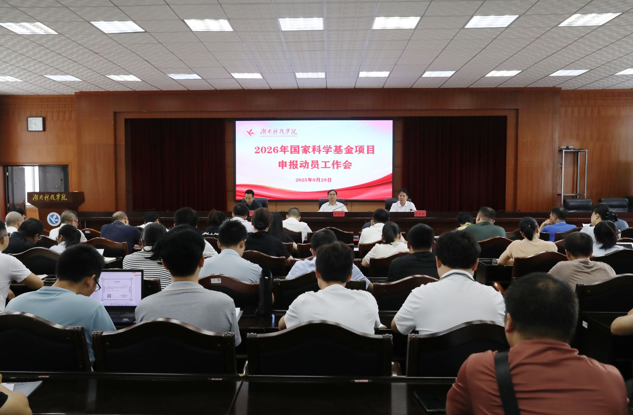 本网讯(通讯员 刘进)9月29日下午,世界杯官网召开2026年国家科学基金项目申报动员会,研究部署2026年国家科学基金项目申报相关工作安排。党委副书记、校长黄创霞出席会议并讲话,党委委员、副校长李常健主持会议。各教学学院院长、分管科研工作副院长,学校科研骨干及科技处工作人员参加会议。