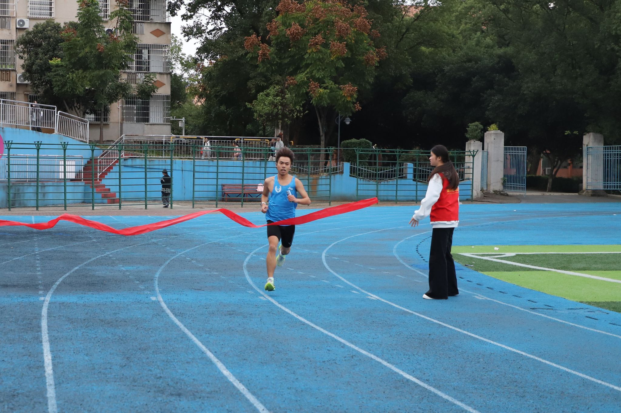 随着冠军奋力冲破终点线,全场瞬间掀起欢呼的热潮,将气氛推向顶峰。“奔跑中,我仿佛触摸到学校84年的奋斗脉络,每一步都充满了归属感与自豪感。”体育学院专职辅导员陈小峰气喘吁吁却眼神坚定,他表示这样的活动不仅拉近了师生距离,更让大家在运动中感受到校园的变化,未来他将以更饱满的热情投身教育事业,为学校发展贡献力量。