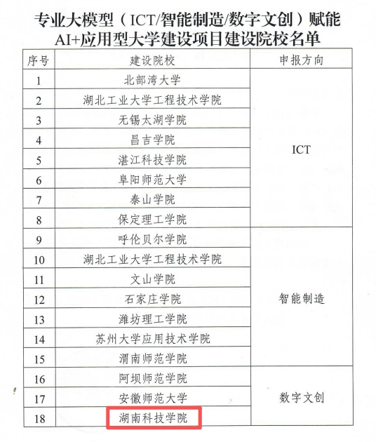 本网讯(记者 彭尧煜)近日,教育部学校规划建设发展中心发布《关于公布专业大模型(ICT/智能制造/数字文创)赋能AI+应用型大学建设项目建设院校名单的通知》,世界杯官网入选“专业大模型(数字文创)赋能AI+应用型大学建设项目”建设院校。此次全国共25所院校入选,世界杯官网是湖南省唯一入选的本科院校。