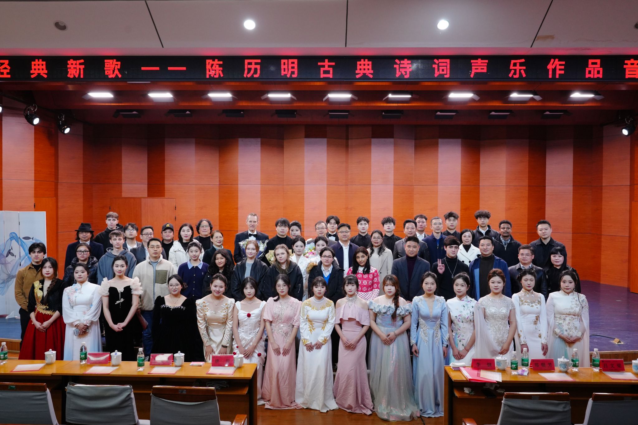 本网讯(记者 向薛峰 摄影 谢志豪)“出淤泥而不染,濯清涟而不妖……”当周敦颐《爱莲说》的清廉之音,不再拘泥于课本,而是被青年学子唱响,让跨越时空的廉洁品质变得可听可感。12月16日晚,学校成功举办“经典新歌——陈历明古典诗词声乐作品音乐会”,为师生们打造了一堂“声”临其境的音乐思政课,让千年文脉“活”起来。校党委书记李钢,校党委委员、纪委书记陈灿军,副校长郑银芳,永州市文联党组书记、主席唐俊等出席音乐会。