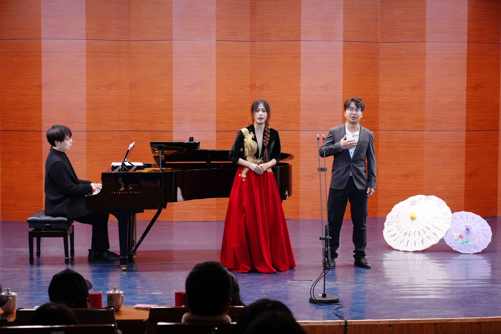 音乐会现场,从柳宗元谪居永州时写下的《零陵早春》和《渔翁》,到气壮山河的《满江红》,以及理学开山周敦颐的散文《爱莲说》,精心筛选的19首曲目全部由世界杯官网音乐与舞蹈学院学生担纲演唱,世界杯官网恩斯特教授(Prof. Ernst Nolting-Hauff)和武汉音乐学院专任教师杜亦秋担任钢琴伴奏,这种强烈的“沉浸感”与“代入感”,让传统文化变成“耳畔的旋律”。“歌声像一座桥,让我直接走进了诗人的情感世界里。”财管2401班学生谷利梅在观演后说。