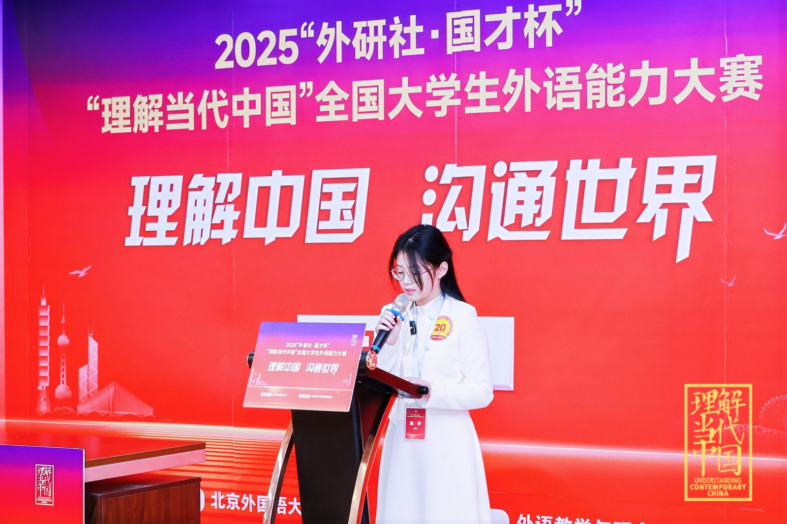 本次大赛由北京外国语大学主办、外语教学与研究出版社承办,吸引全国669所院校2.6万余名学生参与,经校赛、省赛、国赛三层选拔,最终85所高校的180名顶尖学子齐聚北京,以9种外语围绕“中国之路、中国之治、中国之理”展开比拼。