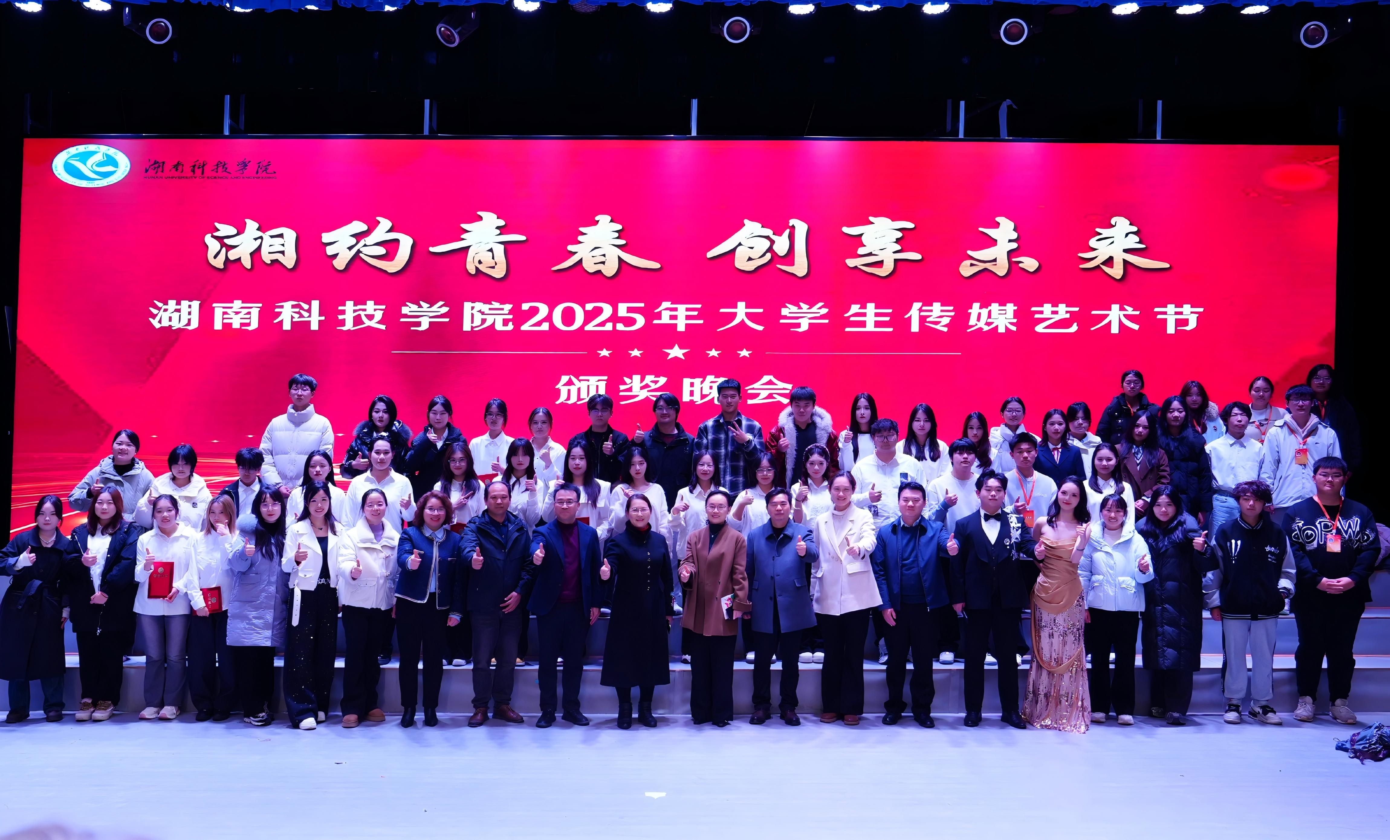 本网讯(通讯员 万书涵 赵瑞芝)艺韵悠扬绘青春,传媒潮涌向未来。12月23日晚,传媒学院在尚美楼大音乐厅举办“湘约青春 创享未来”2025年大学生传媒艺术节颁奖晚会。校领导郑银芳、曾炜出席活动,传媒学院相关负责人、师生代表500余人齐聚一堂,共同见证这场融合创意展演、荣誉加冕与思想碰撞的传媒盛宴。