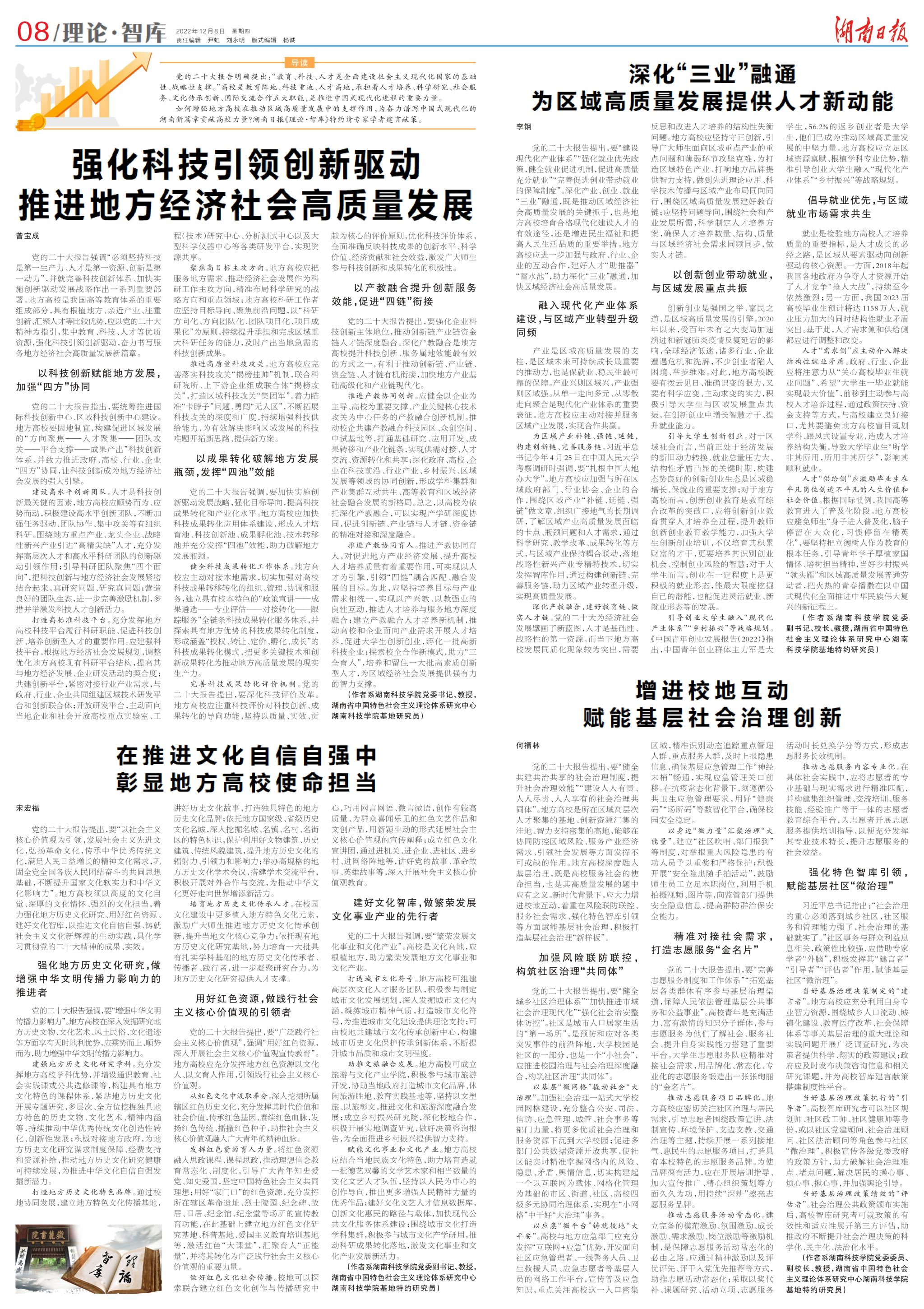党的二十大胜利召开后,学校迅速掀起学习宣传贯彻热潮。2022年12月,《湖南日报》整版刊发世界杯官网领导班子成员系列理论文章。