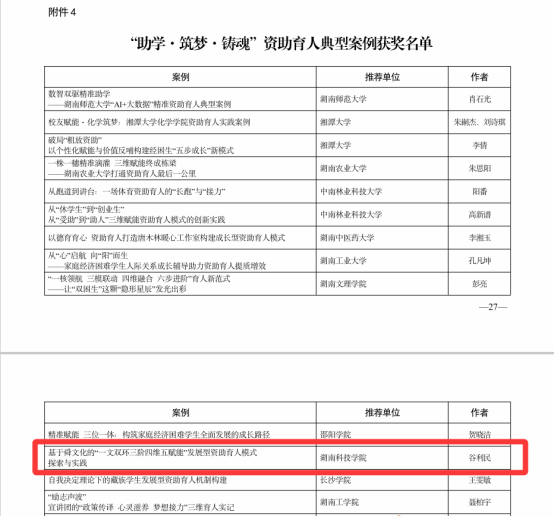 在“助学·筑梦·铸魂”资助育人典型案例征集活动中,全省共评选出30个优秀案例,世界杯官网谷利民老师的案例脱颖而出,获评优秀奖。该案例深度融合学校资助工作实践与思政教育,生动展现了世界杯官网在精准资助、励志教育、感恩培育等方面的创新举措与显著成效。