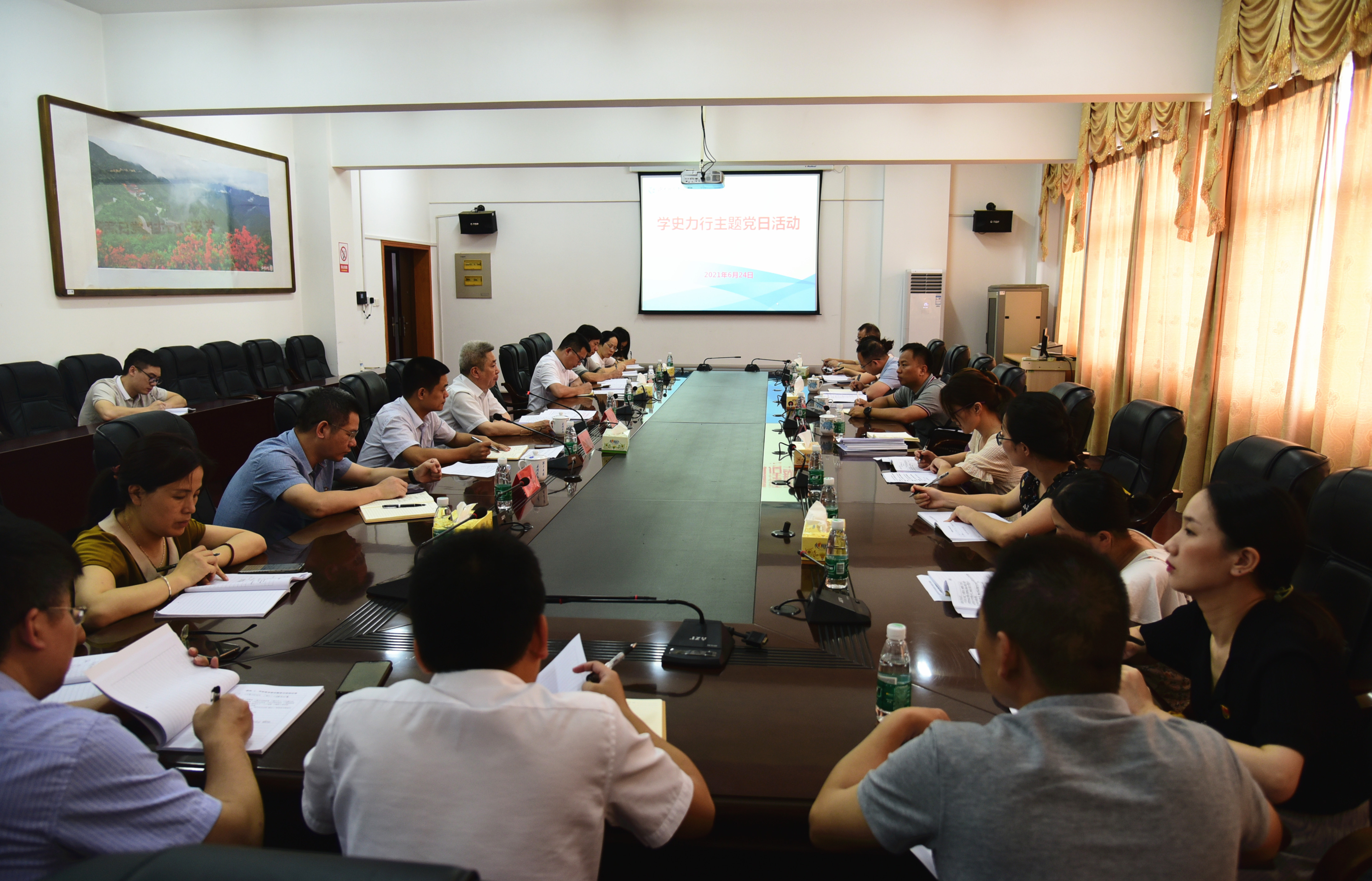 在汇报会上,曾宝成从“抓学习、悟思想,推动新时代党的创新理论入脑入心;抓实践、办实事,推动群众‘急难愁盼’问题有效解决;抓结合、开新局,推动学校事业高质量发展;抓谋划、促落实,推动党史学习教育高标准高质量开展”四个方面全面汇报了学校近期党史学习教育开展情况。他表示,党史学习教育第一轮巡回指导以来,学校进一步深入贯彻落实习近平总书记有关重要讲话精神和中央、省委、省委教育工委决策部署,精心组织、周密安排、从严要求、高位推动,力求“规定动作”做到位,“自选动作”有特色,切实取得教育实效。