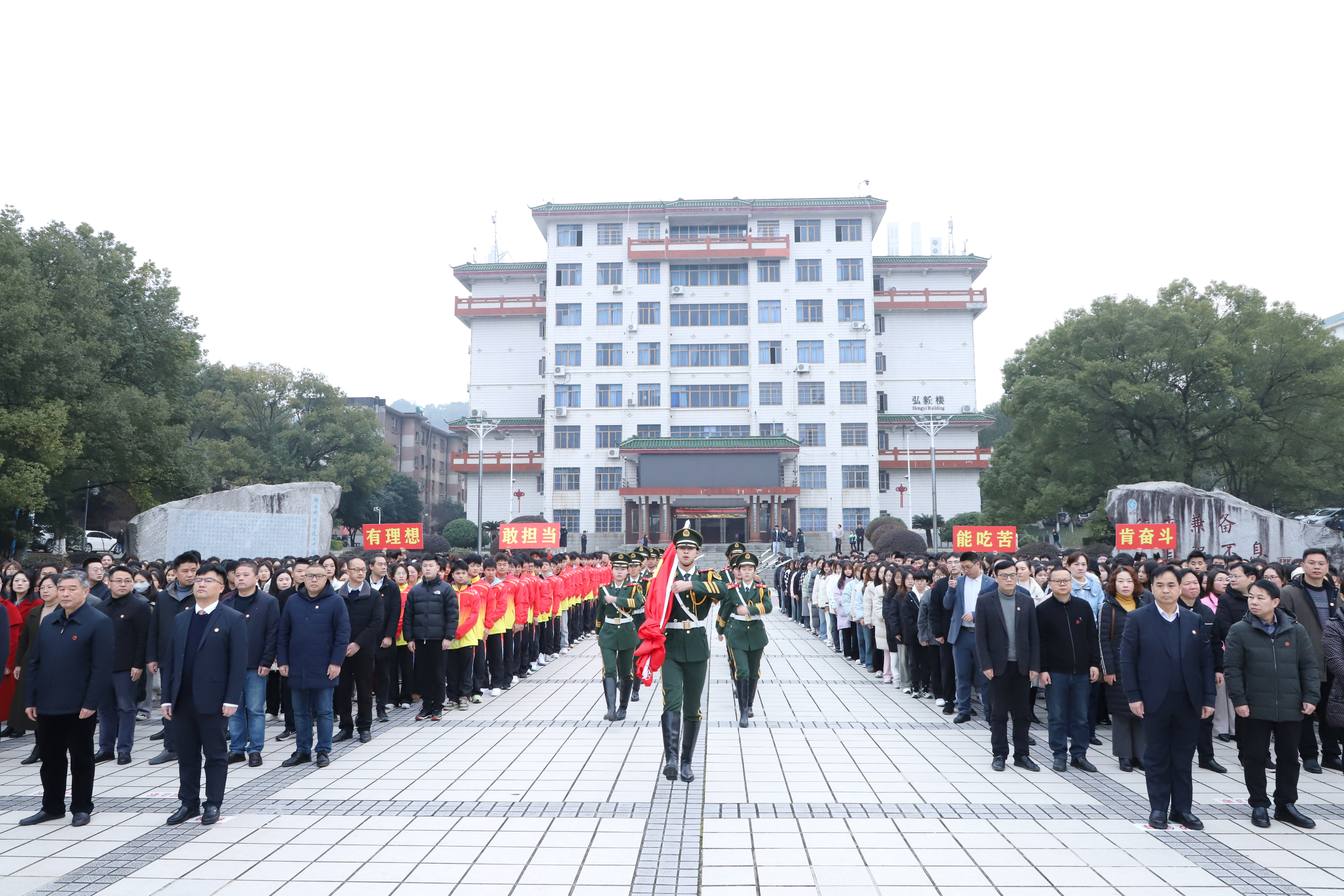 3月6日,全体在校校领导、党委委员及1000余名师生齐聚舜德广场,举行2024年春季学期升旗仪式暨“开学第一课”。党委书记李钢作国旗下的讲话。校长黄创霞主持升旗仪式。