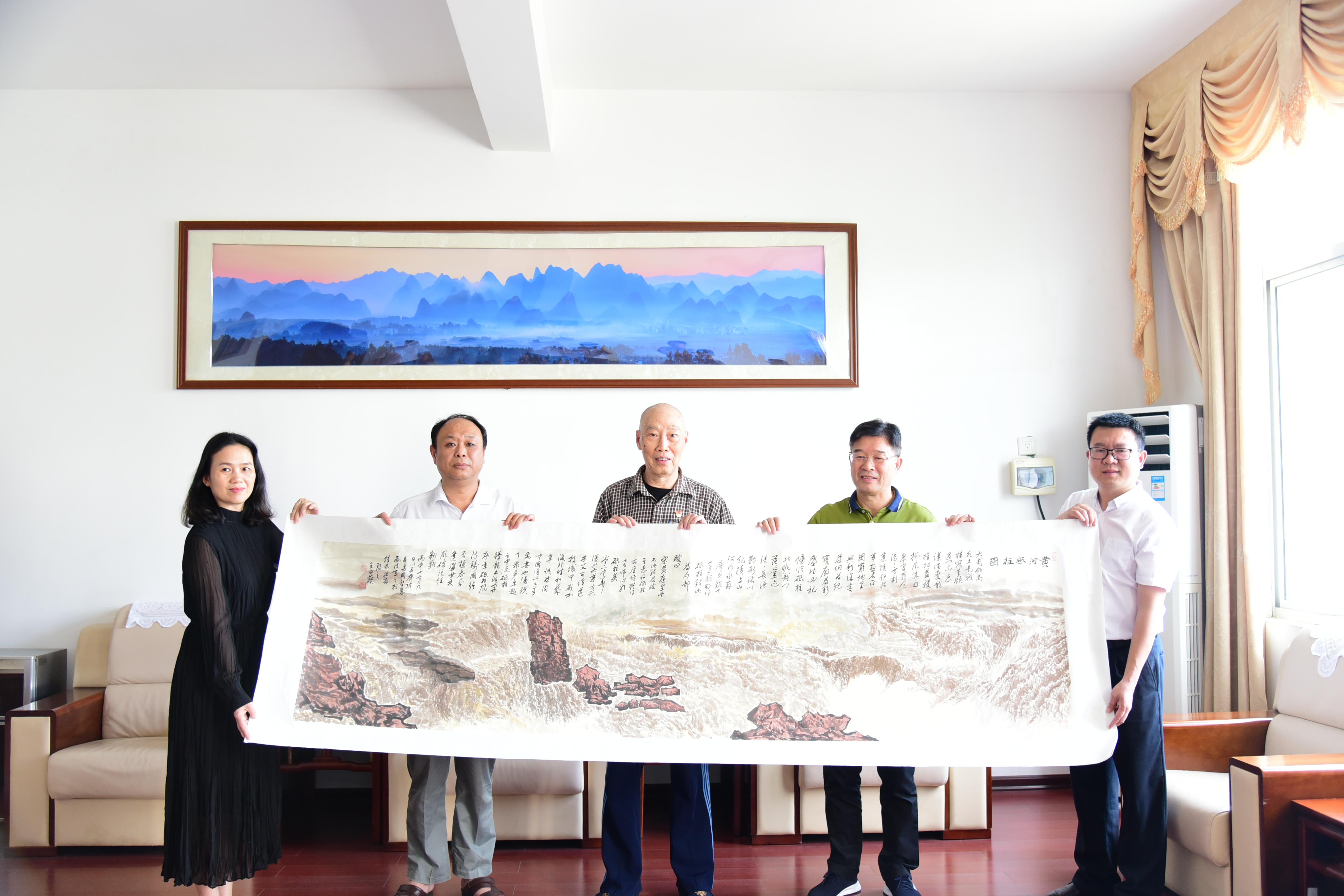 张科春表示,王田葵教授精心创作的这幅作品诗画相嵌,图文并茂,匠心独妙,大气磅礴,饱含了他热爱党、热爱祖国的真挚情感。此次捐献画作展现了他热爱永州文化的深厚情结,倾注了他关爱永州经济社会发展的高远情怀。他的善举,丰富了永州市博物馆书画作品的馆藏资源,为开展书画研究、拓宽展陈内容等提供了宝贵资料。永州市博物馆一定要将王田葵教授捐赠的《黄河砥柱图》收藏好、展示好,同时注重收集本土文艺家们的精品力作,打造富有地域特色的文化新品牌。