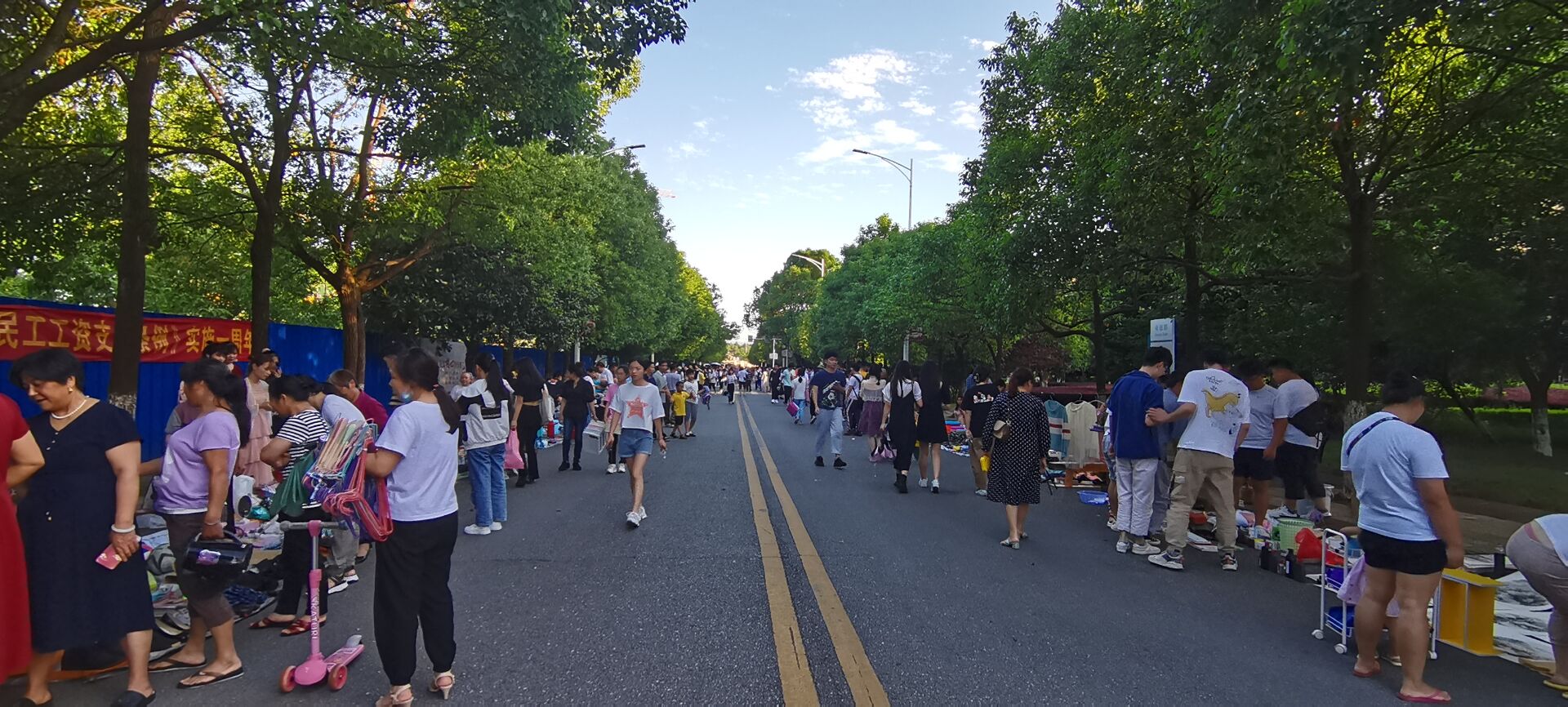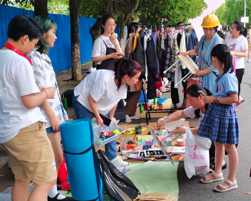 “骨折甩卖!”“是地摊,但不是地摊货!”“只有更低价,没有最低价!”……170余个摊位在舜德路两侧一字排开,毕业学子化身“摊主”精心制作生动有趣的招牌揽客,吸引全校师生以及周边市民驻足购买。“我卖的都是一些用不上带不走的东西,零零散散卖出了十几单!”化学与生物工程学院大四毕业生刘文雅的小摊摆满了二手的资料书、玩偶、网球拍、乒乓球拍等,每件物品上都贴心地用便利贴贴上价格,方便顾客挑选。他说,“这应该算是我最后一次参加大学活动,售卖的物品是我青春的见证,希望能将带不走的青春留给在校的学弟学妹。”
