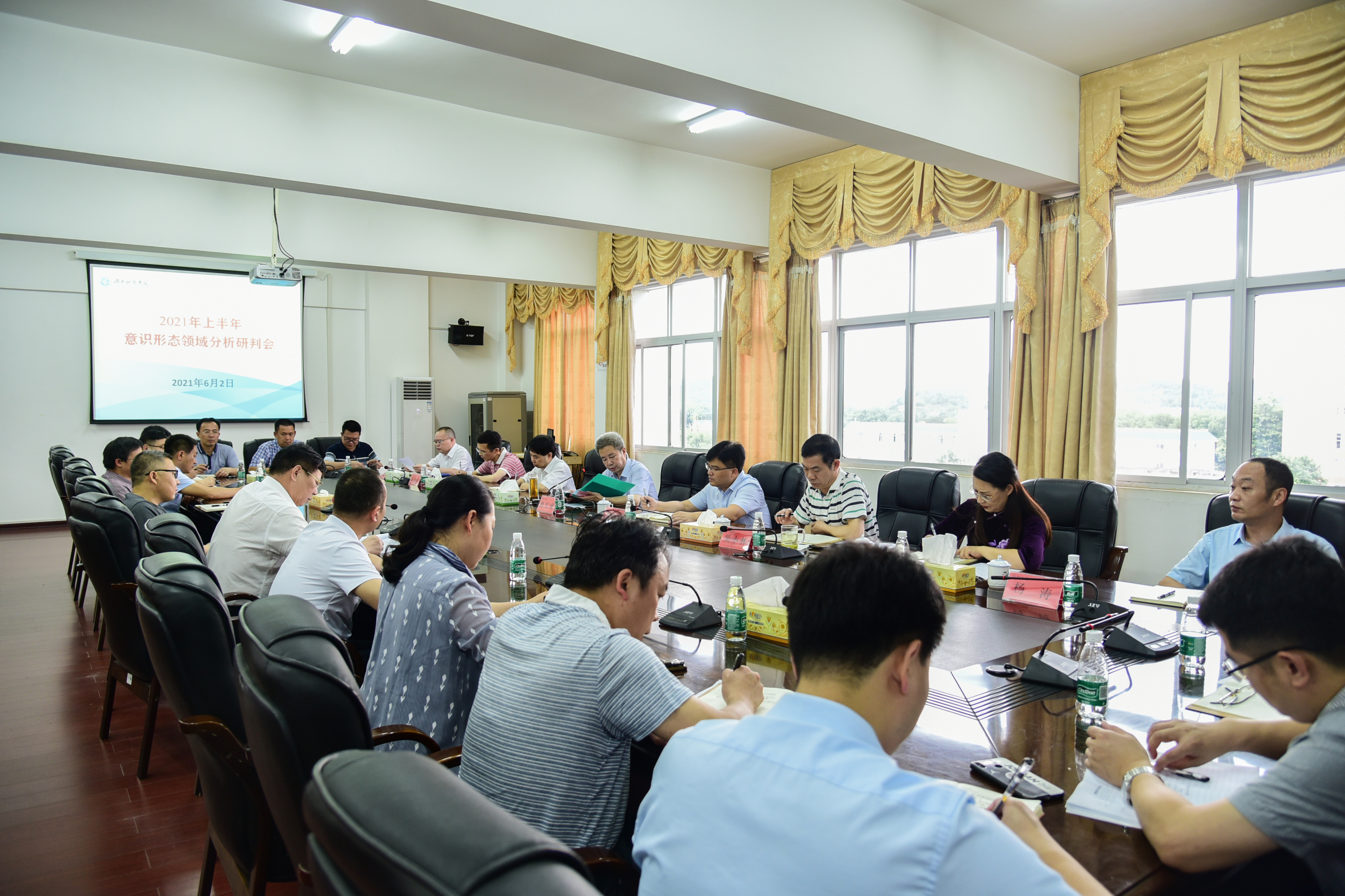 本网讯(实习记者 周文君)6月2日下午,学校召开2021年上半年意识形态领域分析研判会,推动意识形态工作责任制落实落地,切实维护好、巩固好学校意识形态领域的安全稳定。党委书记曾宝成,党委副书记、校长李钢,校领导李常健、吴小林、陈灿军、郑银芳、何海,党委委员、组织部部长杨涛出席会议。